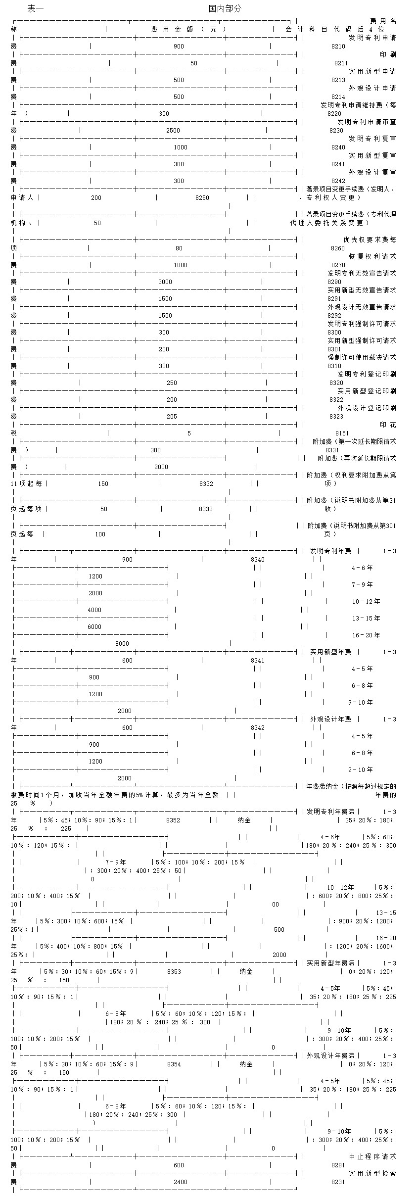 专利费用金额及专利费用会计科目代码